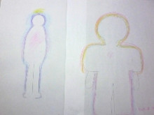 下のものは、どちらのスケッチにも、ハート付近にピンク色のもやもやっとした光(チャクラ)が描かれています。