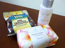 プルメリアの甘い香りの石鹸とボディミルク、そしてマカダミアナッツチョコレート~![]()