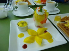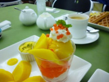 新宿タカノフルーツパーラーの、マンゴーワッフルセットです♪