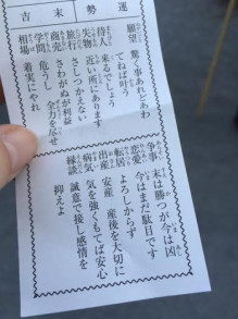 その後ウキウキとおみくじを引いたところ、今年は末吉でした![]()