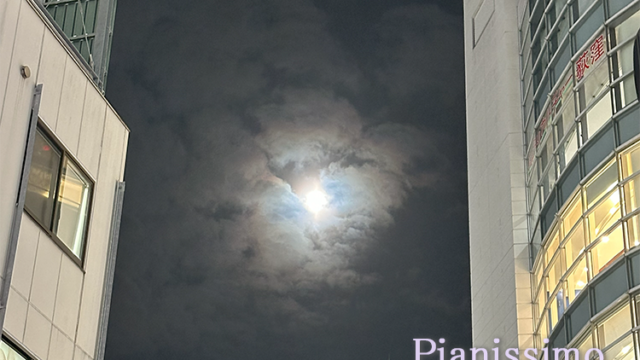 うちの近くでは、少し雲がかかった、幻想的な満月を見ることができました(^^)