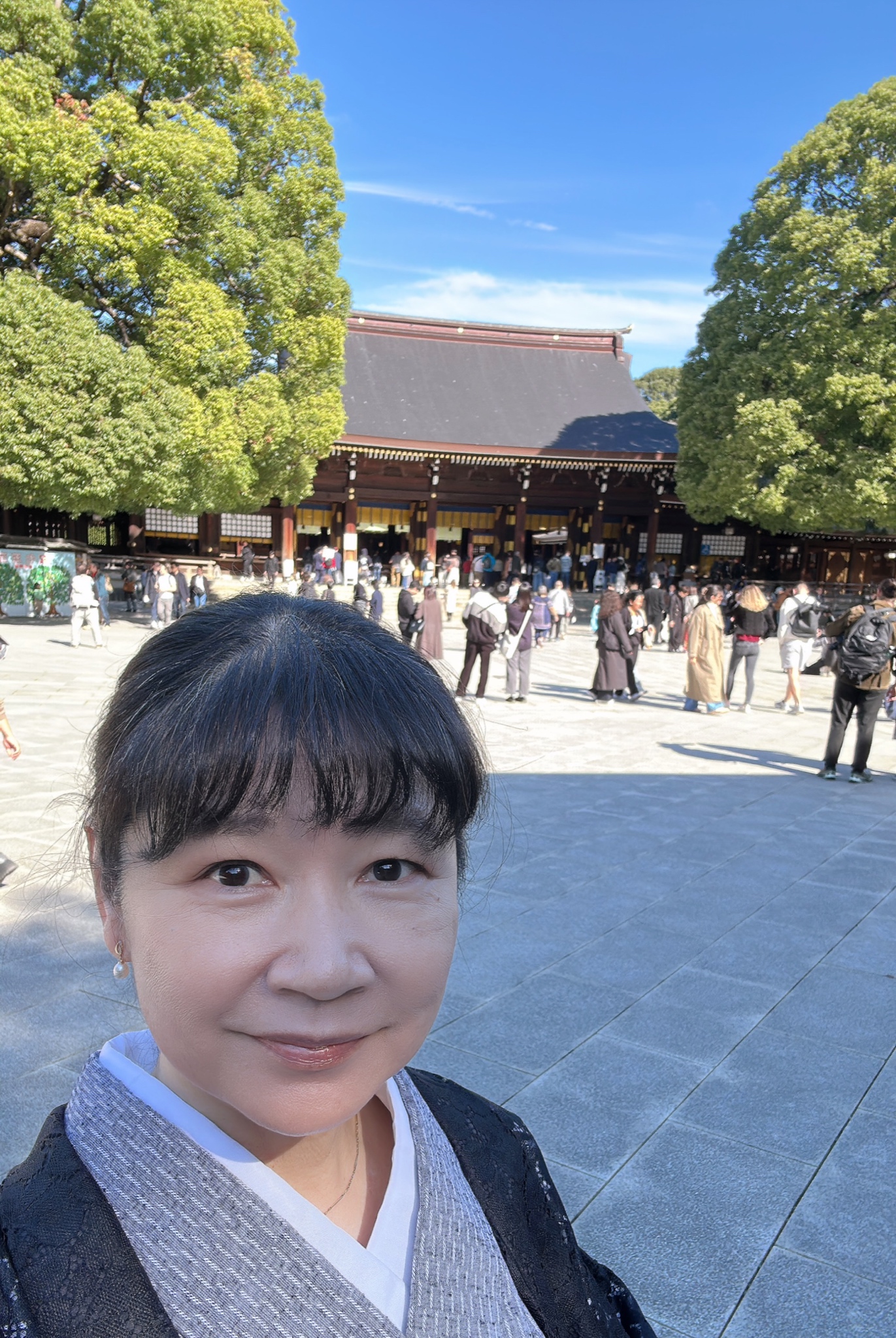天気も良かったし、せっかくなので本殿前で記念撮影しました。(インカメなので反転しています)