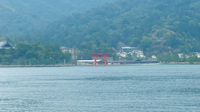 フェリーは2社あるのですが、JRのフェリーに乗ると、厳島神社の前を通って島に向かうと聞いて迷わずチョイス♪