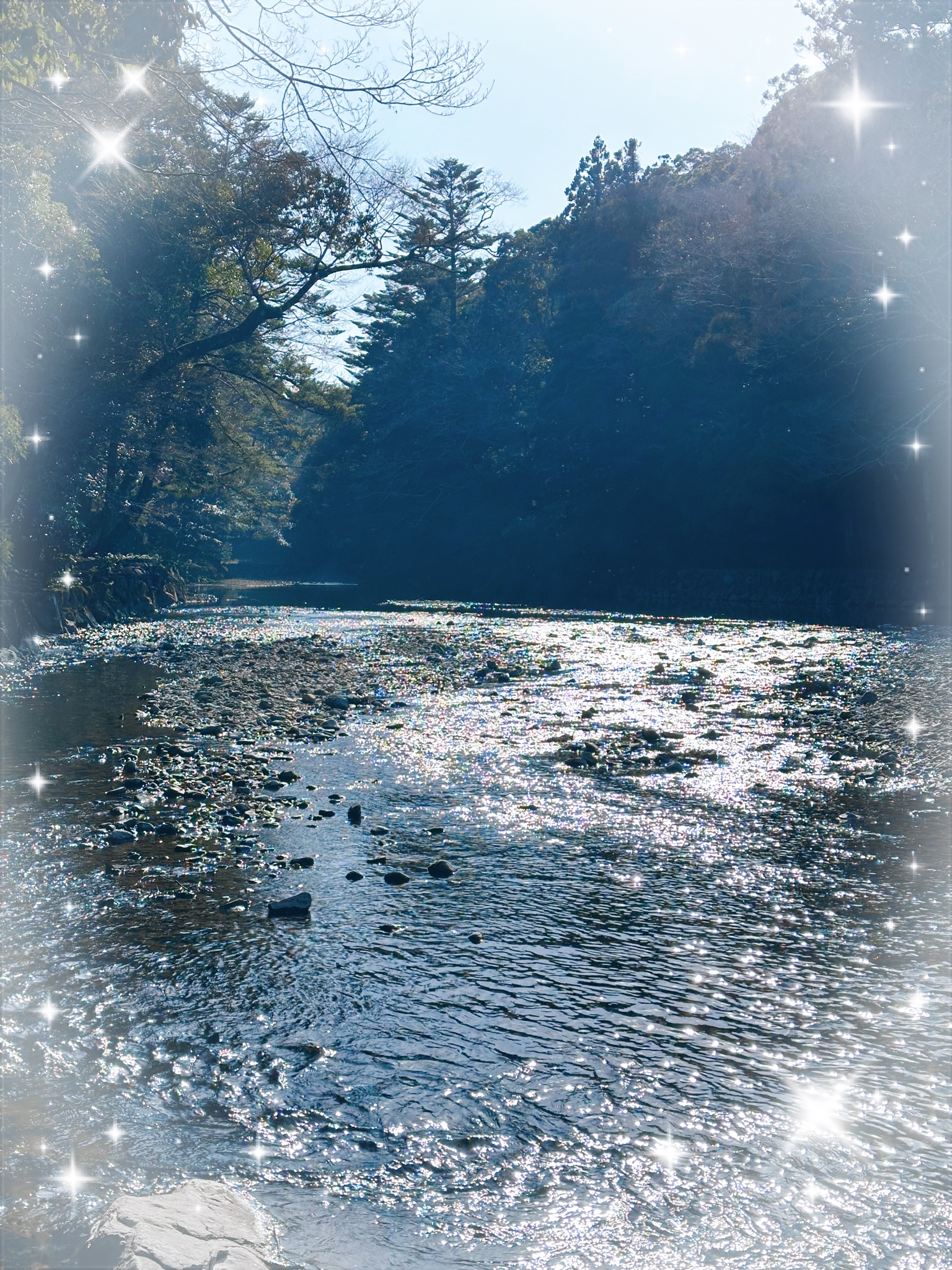 水面がキラキラと美しく、流れる水の音に癒されました。